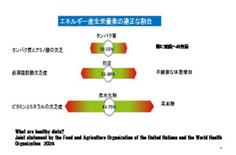 2024年10月24日、FAOとWHOは、近年、世界中で報告された多くの論文をもとに「健康な食事とは何か」の共同声明を発表しました。声明文によると「健康な食事」は、「十分」、「バランス」、「適度」、さらに「多様性」の4つの原則から成り立っています。